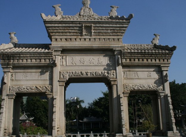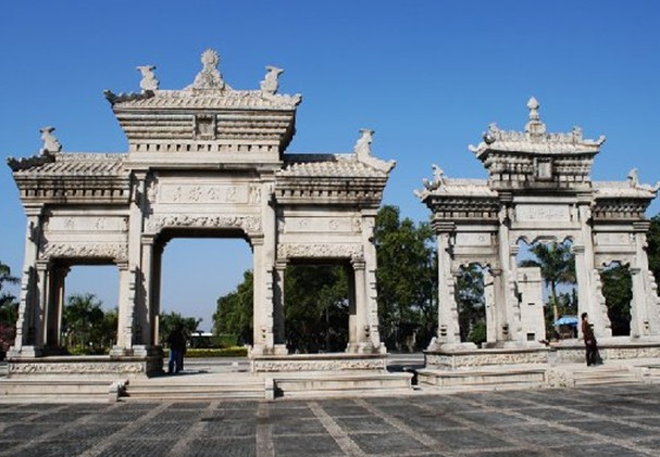 梅溪牌坊在珠海市前山鎮(zhèn)梅溪村。清光緒帝為旌表當?shù)剜l(xiāng)紳、首任清政府駐檀香山總領(lǐng)事陳芳及其父母等人造福桑梓于十二年(1886年)和十七年共賜建牌坊4座,現(xiàn)存的3座牌坊并排而立。牌坊集西方的裝飾風格和傳統(tǒng)的中國建筑結(jié)構(gòu)為一體,中西合璧,巍峨壯觀,工藝華美,是華南地區(qū)罕見的古建筑,也是珠海有名的十景之一。