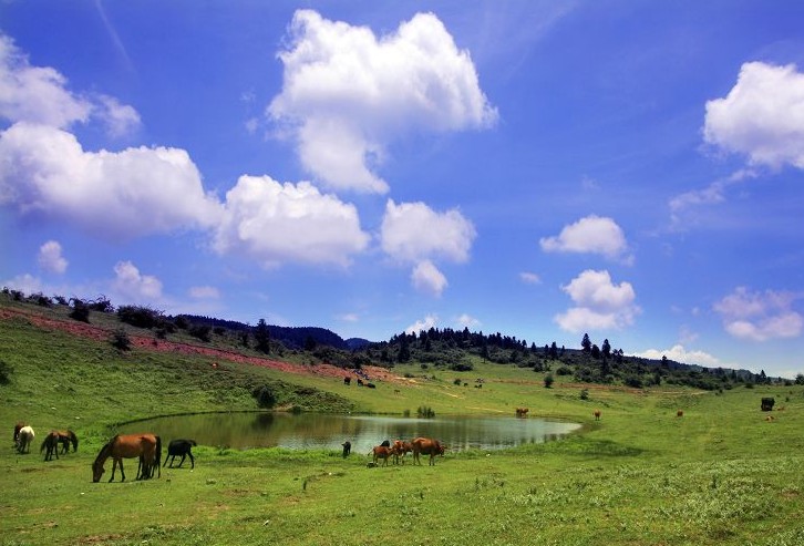 仙女山國家森林公園仙女山的林海、奇峰、草場、雪原被游客稱為四絕。登峰遠(yuǎn)眺,起伏而又不失平坦;萬峰林海,蒼翠欲滴;鑲嵌在山林之間的遼闊草場,野花似錦、延綿天際、牛羊蕩漾其間,如詩如畫;山峰、山谷、森林與草原渾然一體,交相輝映。給人以陰柔與陽剛相濟(jì)的和諧美。游人騎上駿馬游弋在蜿蜒地叢林小道,在茫茫林海中穿梭馳騁,令你獨(dú)享濃郁的南疆風(fēng)情;駕駛著卡丁車、越野車狂馳在遼闊的賽道上,讓你狂放不羈的欲望盡情釋放,真可謂“幽谷覽勝景、原野縱豪情”。