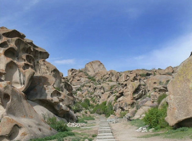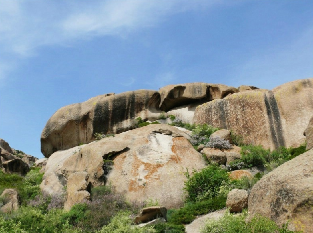 一條國(guó)防公路從博樂(lè)出發(fā),呈西南--東偏北走向貫穿其中一條較寬山谷--秀女溪谷。進(jìn)入谷內(nèi),有一圓形開(kāi)闊之處,放眼望去,似用巨石砌成的古堡。版權(quán)所有聊城聊之旅國(guó)際旅行社有限公司,轉(zhuǎn)載必究!頂部之石,如炮臺(tái),似望樓;石面之竅,既像獨(dú)目嘹望之孔,換個(gè)角度,又似天降水滴,故名為“生命之源”。真可謂移步換景!雖處于干旱半干旱地帶,但是怪石峪黃昏后氤氳多云,山谷底有泉流,石石皆有苔蘚,新長(zhǎng)者,呈現(xiàn)嫩綠;枯萎者,如涂赭黃;成熟的,似貼黑面。各色相間,布于石上,若古堡斑斕多彩的裝飾,競(jìng)顯貴者之豪華,王者之氣勢(shì)。
