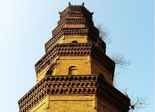 薛閣塔在安徽亳州老城東南,是一座磚塔。直椎式八角開(kāi),共七層,高34.15米,周圓23.36米。塔座由八塊青石奠基。塔一二層為仿木結(jié)構(gòu),每角砌磚為方柱,高3.5米。柱上仿高50公分。仿上為塔檐、上并飾以斗拱、昆蟲(chóng)、鳥(niǎo)卉花紋,登塔門面向東北,有螺旋式臺(tái)階,塔室為一個(gè)面南的小龕,可能是供俸神象用的,現(xiàn)空無(wú)一物。各層塔檐造型與一二層基本相同。塔之上頂八角飛檐,挑角垂脊,鋪有筒瓦滴水檐形如八角古亭。版權(quán)所有山東聊城聊之旅國(guó)際旅行社有限公司,轉(zhuǎn)載必究!塔尖端為鐵鑄蓮座,座上有螺旋鐵柱支撐。一個(gè)鐵葫蘆直插云霄。