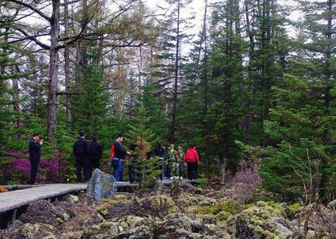 紅星火山地質(zhì)公園,亦稱謂紅星火山巖地質(zhì)公園,或紅星地質(zhì)公園,位于黑龍江伊春市紅星林業(yè)局大平臺(tái)施業(yè)區(qū),距伊春市中心160公里,占地面積20,188公頃,是繼五大連池之后又新發(fā)現(xiàn)的火山地質(zhì)奇觀。這里大片的火山溶巖、石海以及周邊多樣生態(tài)類型為動(dòng)植物提供了良好的生存環(huán)境。丹頂鶴、駝鹿等國家1、2級(jí)保護(hù)動(dòng)物達(dá)47種,植物511種,被譽(yù)為“黑龍江動(dòng)植物資源保護(hù)區(qū)”。公園有三大奇特景觀:火山地貌、杜娟花海、庫爾濱霧松?;鹕降孛?。是由于此地從晚石碳紀(jì)、早二疊紀(jì)、晚二疊紀(jì)以來多次發(fā)生火山運(yùn)動(dòng)、玄武巖噴溢而形成的地質(zhì)現(xiàn)狀。