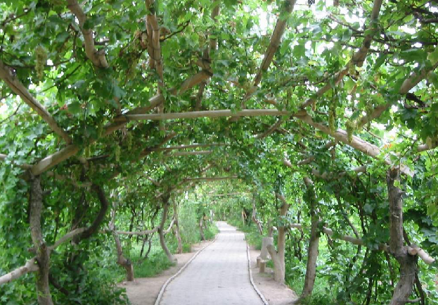 葡萄溝,是火洲的“桃花源”。溝里四處都有令人向往的地方,一是葡萄溝接待站。這是為中外賓客開辟的游覽場所,依山傍水,安靜、幽雅,景物天成,數條葡萄長廊深邃、幽靜,有的游客信步葡萄架下,仰首盡情觀嘗珍珠般的葡萄,有的游人坐在葡萄架下品嘗鮮葡萄。長廊盡頭碑石上葡萄溝三個鮮紅大字,格外引人注目,游人爭先恐后在此照相留念。園內有民族風味的食堂,有賣工藝品的蒙古包,還有劃船游玩的地方。二是葡萄山莊。版權所有聊城聊之旅國際旅行社有限公司,轉載必究!這是葡萄溝里設備齊全、級別較高的度假村。這里有高檔次床位120個,有供120人就餐的飯廳,還有卡拉ok廳、游泳池等。三是吐魯番葡萄展覽館。四是吐魯番維吾爾族民居民俗館。五是中新公司,該公司是以葡萄為主要原料生產葡萄酒和飲料的中外合資廠家。六是葡萄鄉(xiāng)的度假村。