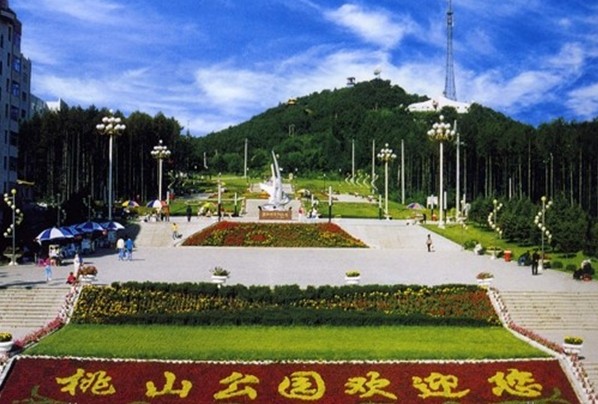 桃山公園位于七臺河市桃山區(qū)中心地段,始建于一九八五年,占地面積 39公頃,除甬路和建筑外,幾乎全部被草坪、花壇和樹木所覆蓋。全園共栽植花草6500余株,人工草坪24000平方米,還有杜松、垂柳、柏樹、樟子松、蒙古櫟、榛子、柳樹、楊樹,遠遠望去,郁郁蔥蔥,繁花似錦,鶯歌燕舞。 桃山公園依山而建,氣勢磅礴。獨具匠心的設(shè)計與天然景觀渾然一體,備受游客稱贊。桃山公園東廣場被評為黑龍江省“一建杯”十佳精品廣場,公園設(shè)計獲省公園設(shè)計最高獎。
