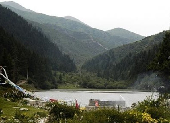 位于王夏公路約10公里處,距縣城17公里,是一潭構造成因的斷崖地形之湖盆。湖面海拔三千米左右,呈狹長形,湖濱周圍怪石嶙峋,虬松四出。湖南北長約350米,東西寬約百米,面積約有五十余畝。湖濱地形開闊,外圍前塬是平壩草甸,三面環(huán)山,山上森林密布,林中百鳥群集,湖中魚類繁生,湖畔野草叢生,百花盛開,湖光山色,令人陶醉。人們形容達宗湖象一顆鑲嵌在密林幽谷里的明珠,在高山峽谷之巔放射著耀眼的光芒!