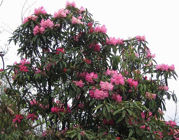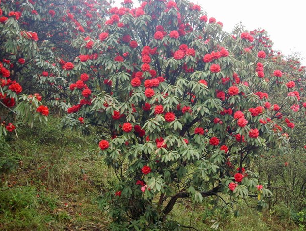 馬纓杜鵑樹身高大,花冠濃密,多的有二、三百朵?;ù厝鐖F團烈火在枝頭燃燒,映紅了天,映紅了地,映紅了游人的臉,映紅了四周的山。馬櫻杜鵑又叫”馬櫻花“、”索瑪花“,傳說是索瑪姑娘的鮮血變成的圣花。