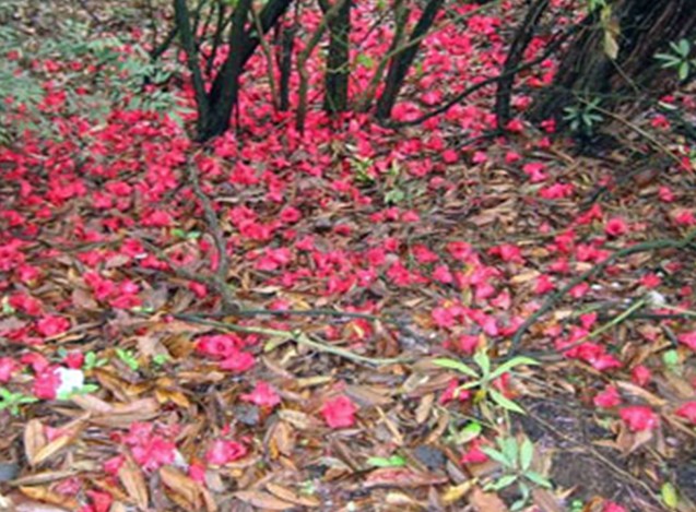 這里有五條路可以通過花區(qū),后來人們發(fā)現(xiàn)盛花季節(jié),五條路上落英繽紛,非常美麗,就將”五叉路“改為”五彩路“了。”五彩路“是杜鵑花品種比較集中、齊全的景點。