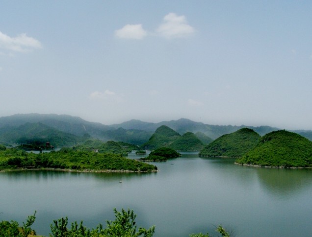 百花湖畔,清鎮(zhèn)市第二高峰云歸山,自東向西環(huán)抱鄉(xiāng)境,支脈延伸,千姿百態(tài),青翠秀麗。丘陵、槽谷、山地、水域連為一體,形成一個生態(tài)大板塊。云歸山居清鎮(zhèn)市八景之首,“爐嶺歸云”高聳入云,極目百里,昕夕云集。云歸林區(qū)、九里箐,方圓七十余里,原生植被,物種繁多,森林茂密,鳥語花香,山谷幽深,清泉汩汩。石操、上麥城、下麥城、溫水、哪嘎、盤龍洞等林場構(gòu)成道道生態(tài)屏障。為打造“森林生態(tài)”文化,相繼實(shí)施長江防護(hù)林、天然林資源保護(hù)、退耕還林還草、沿湖綠化工程,森林面積從“九五”末的8.89萬畝增加到2006年的9.63萬畝,森林覆蓋率提高到60%。林密、地綠、山青、水秀使百花湖鄉(xiāng)成為名副其實(shí)的避暑勝地、“天然大氧吧”。綠色農(nóng)業(yè)、生態(tài)農(nóng)業(yè)成為調(diào)整產(chǎn)業(yè)結(jié)構(gòu)的主攻方向,十里杜鵑、十里櫻桃、百畝李子、千畝高產(chǎn)油菜、百畝烤煙、百萬只肉雞飼養(yǎng)、無公害茶樹菇等基地初見成效,促進(jìn)了農(nóng)民增收,版權(quán)所有山東聊城聊之旅國際旅行社有限公司,轉(zhuǎn)載必究!2006年農(nóng)民人均純收入2877元。蘿卜、云歸、三屯一帶十里峽谷盛產(chǎn)櫻桃,杜鵑遍山,獨(dú)具“春到三月意更濃,云歸十里櫻桃紅。杜鵑滿山織云錦,農(nóng)家年年坐春風(fēng)”的詩情畫意。“品云歸櫻桃,賞十里杜鵑、烤百花鮮魚”,是百花湖旅游的獨(dú)特享受。境內(nèi)三季有果、四季有花,生機(jī)盎然,漫步山間田野,賞花品果,其樂無窮。 百花湖鄉(xiāng)境內(nèi)河流眾多,水資源豐富。上世紀(jì)60年代因建百花電站形成的百花湖,與紅楓湖并稱“姊妹明珠”。蓄水2.1億立方米,水面14.5平方公里,92%在百花鄉(xiāng)境內(nèi)。如今湖面如鏡、影映青山、振翅小島、層層梯田、點(diǎn)點(diǎn)農(nóng)舍、縷縷炊煙,一派田園風(fēng)光,成為休閑避暑、度假觀光的旅游勝地。百余個峰叢島嶼靜臥水中,迎客松、石鏈鎖猴、青蛙聽濤、小三峽、嬌燕戲水、八仙過海、筆峰疊翠等自然景觀千姿百態(tài)。百花湖沿岸,三屯五堡之間,百花山莊、百花游樂園、明月樓、觀云樓、靈達(dá)度假村、星苑等一幢幢旅游建筑拔地而起,集會議、休閑、餐飲、娛樂、觀光為一體。著名作家金庸星苑登樓觀景,欣然贊曰“如此湖山天下無,天然勝景百花湖”。