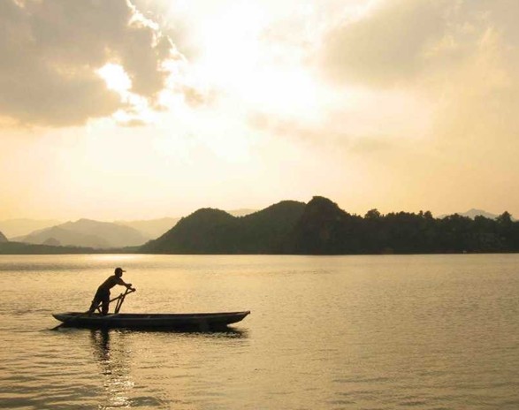 景區(qū)以湖光山色和巖溶地貌的自然景觀為主體,兼具秀、幽、奇、巧的特色?,F(xiàn)已開放旅游景點(diǎn)23處。湖區(qū)一串 串孤峰低島,天然地把湖水劃分為中湖、南湖和北湖。南湖狹長,奇峰連綿;中湖開闊,碧波萬頃;北湖山重水復(fù),島多灣奇。整個湖水清澈平穩(wěn),環(huán)湖山岳雄偉,形成多層次的山外山、湖外湖的氣勢。湖中島嶼自然成趣。百花島上,群芳爭艷,姹紫嫣紅,海棠、紫薇、桂花、梅花,競相開放。