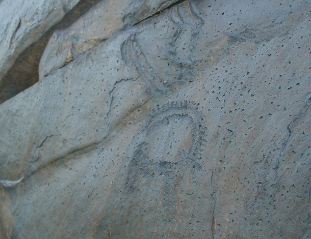 畫馬崖巖畫群中的巖畫,是用極其簡(jiǎn)單的線條勾勒出的各種造型,類似于現(xiàn)代繪畫中的速寫風(fēng)格,但是其線條卻異常簡(jiǎn)潔甚至抽象,寥寥數(shù)筆卻惟妙惟肖。以現(xiàn)代人的認(rèn)知對(duì)這些圖案進(jìn)行解讀,簡(jiǎn)單線條勾畫出的圖案可能是馬、人和太陽(yáng),還有一些魚、虎、龍、狗、仙鶴等等。然而,專家考察卻發(fā)現(xiàn),巖畫中描述人的線條頭型呈不規(guī)則的圓隆狀,四肢和身體都用形狀不同的線條表示。