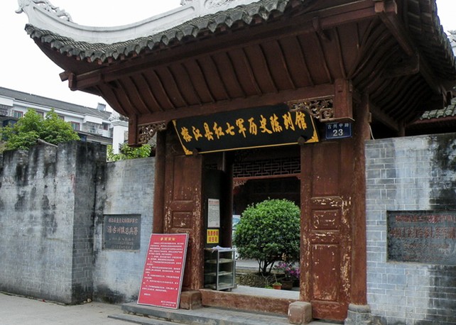 古州紅七軍軍部舊址位于貴州省古州中路西側(cè),原為清代鎮(zhèn)臺(tái)衙門,已被評(píng)為省級(jí)文物保護(hù)單位。1930年4月,紅七軍為擺脫國(guó)民黨桂軍對(duì)右江革命根據(jù)地的圍困,開展游擊戰(zhàn)爭(zhēng),于30日擊潰黔軍第二師副師長(zhǎng)史遠(yuǎn)勛部,攻占榕江縣城(古州),紅七軍軍部駐清鎮(zhèn)臺(tái)衙門內(nèi),張?jiān)埔蒈婇L(zhǎng)和李明瑞總指揮在這里主持召開軍事會(huì)議,接見各界人士,宣傳黨和紅軍的方針、政策。
