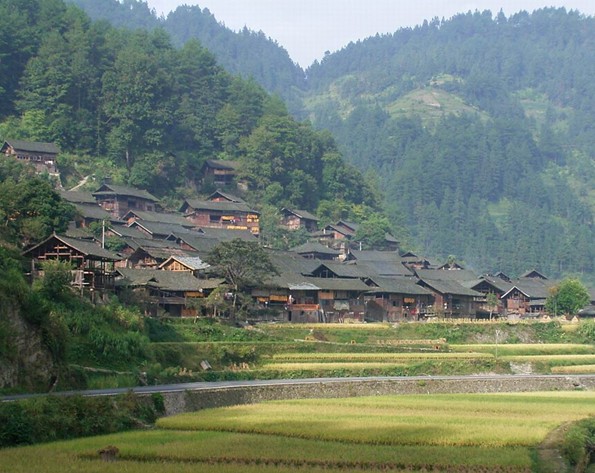 朗德上寨,屬貴州省黔東南苗族侗族自治州雷山縣報(bào)德鄉(xiāng),是一個(gè)苗族村寨,距凱里市區(qū)29公里,距縣政府雷山7公里,是貴州省東線民族風(fēng)情游的重點(diǎn)村寨之一。這是一個(gè)有百戶人家的苗族村寨。郎德上寨系苗語“能兌昂糾”的意譯,“能兌”即歐兌河下游之意,村以河名,“昂糾”即上寨,郎德上寨因?qū)倮傻碌仄戏?,故名。寨?nèi)苗民的服飾以長裙為特征,所以又稱為“長裙苗”。