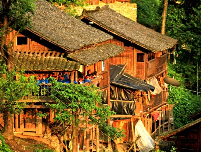 榕江縣侗家村寨大多坐落在古樹參天,風光秀麗,竹林掩映,依山傍水的地方。房屋多為二層或三層不等的木質結構吊腳樓,吊腳樓一般依山勢開辟成兩層地基,下層屋基柱腳須用筒柱支撐,有的因偏廈建在地基之外的村巷上或魚塘上而無支柱造成木樓空懸,吊腳樓因此而得名。七十二寨的房子,每幢樓一般分兩間或三間,也有五間或七間的。除了正屋外,兩側還設有寬約丈許,與正屋進深等長的偏廈,上樓的樓梯多架于正屋右側的偏廈上,二樓前邊是一道由東直通往西的長長走廊,廊沿外及整個房子四周先裝木板后于裝板外鑲嵌雕花格子,這就是我們通常所說的雕房。走廊里外分別擺放有幾根寬約尺許,長達丈余的杉或松木板凳供客人休息用。七十二寨侗族的火堂一般設在堂屋里間或兩側房間內,火堂分“平燒火堂”和“高燒火堂”兩種。樓下主要用來關養(yǎng)牲畜,樓上住人,存放糧食,天樓堆放生活、農用雜物等。平燒火堂的表層齊樓板表面,裝滿黃泥巴的撻斗形狀的火堂斗高約一尺,長寬約1米見方,懸于樓板下邊;高燒火堂的泥斗置于樓板之上,火堂表面高于樓板尺許,左右及內側再鋪一層樓板,形成上下兩層,就表上層連火堂形成長約一丈,寬約六尺的長方形樓臺,臺下的樓板僅余常約一丈,版權所有山東聊城聊之旅國際旅行社有限公司,轉載必究!寬4尺的狹長形,與火堂表面形成兩層,這就是獨具特色的七十二寨侗族“火鋪臺”。“火鋪臺”主要用于炊事和烤火,其下面一般是用來存放紅苕、洋芋等物。這就是七十二寨侗家人房屋建筑的特點。