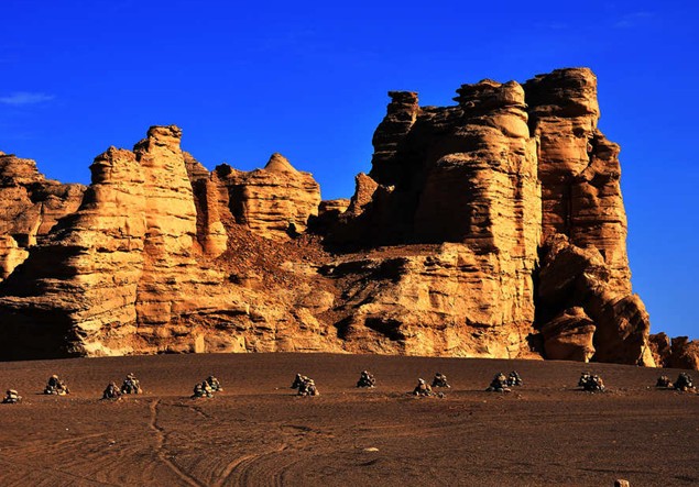 魔鬼城位于哈密市五堡鄉(xiāng)以南,距五堡鄉(xiāng)20Km,距哈密市約100Km,由于它神秘莫測,不熟悉地形的人若遇風(fēng)暴,有迷失方向的危險,哈密雅丹地貌東起煙墩外的駱駝峰,經(jīng)雅滿蘇鐵礦,大南湖煤礦,到五堡沙爾湖十三間房等長約400公里,寬約5-10公里,在哈密屬于特殊的地理環(huán)境,它是經(jīng)過漫長的風(fēng)蝕自然而形成的。在魔鬼城可以看到那些酷似城堡、殿堂、佛塔、碑、人物、禽獸形態(tài)各異的景觀、令人眼花繚亂的陡壁懸崖、以及混跡巖礫中五光十色的瑪瑙、隨處可見的硅化木、枝葉清新的植物化石,偶爾可獲得象恐龍蛋化石的小圓石頭,海生的魚類化石、鳥類化石,當(dāng)夜幕降臨時有時會聽到鬼哭狼嚎令人發(fā)指的嘶叫,因此才被人們稱之為“魔鬼城”。 版權(quán)所有山東聊城聊之旅國際旅行社有限公司,轉(zhuǎn)載必究!其實這里還真正存在著古城堡建筑、古民房遺址―艾斯克霞爾古城堡:離地面約六米的風(fēng)蝕臺上的長方形的土夯建筑有高約五米,前面有門有窗的居住地,這就是人類活動之地、是古絲路的驛站或是哈密王朝的西南前哨,據(jù)當(dāng)?shù)厝送茰y,此地西面的沙爾湖(由流沙通向羅布泊)干涸之前,這里也有村莊人家,當(dāng)水源游移(地殼變化)沙爾湖消失后,林木飛鳥在風(fēng)沙中,部分變?yōu)榛?,而此地居住的人只得背井離鄉(xiāng),連先祖的遺骨也移走了、至今僅有遺址。哈密魔鬼城已是國家AAA級景區(qū)。
