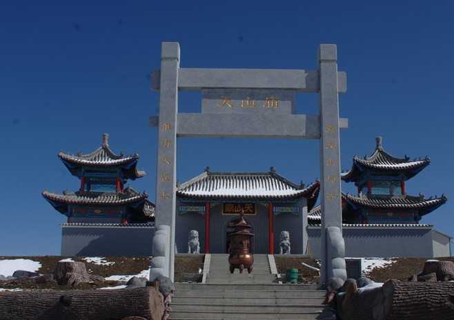 天山廟位于天山之巔,海拔640米,南距哈密市60千米。登臨天山廟,天山美景一覽無余。天山廟全稱"天山關(guān)帝廟",廟為方體建筑,長(zhǎng)12米,寬7米,巨木為梁,青磚為墻,墻中嵌有四根立柱;上、下共三層,現(xiàn)頂部已毀。天山廟扼絲路北新道的咽喉要沖,它的歷史上可上溯至漢唐,天山廟與漢、唐、清三代經(jīng)營(yíng)西域的歷史都有重大關(guān)系,原廟中存"聯(lián)額頗多"。因清乾隆五十一年(公元1786年)在天山頂部修建關(guān)帝廟而得名。