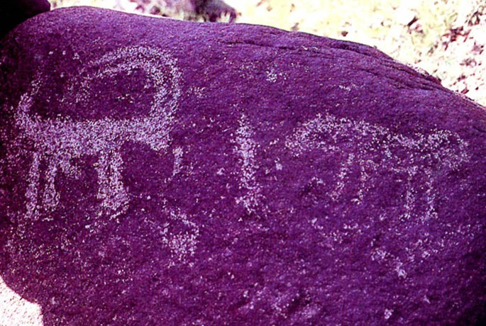 克爾堿巖畫位于托克遜縣庫加依鎮(zhèn)境內(nèi),南距鎮(zhèn)政府約4.5千米,巖畫散布在鎮(zhèn)北的克爾堿 溝兩岸,畫面內(nèi)容主要有:羊、牧羊人、鹿、狗、駱駝以及狩獵、放牧等場面。其中一幅水系圖令人注目。巖畫基巖均為侏羅紀(jì)粗砂巖。相傳有位神匠途經(jīng)此地,眼見四周環(huán)境優(yōu)美,于是整日靜坐在河岸欣賞,版權(quán)所有山東聊城聊之旅國際旅行社有限公司,轉(zhuǎn)載必究!后將四周景色逐一刻畫于巖壁上,形成人們今天看到的巖畫。