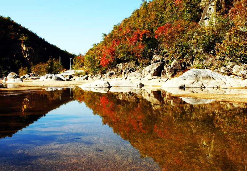 五龍?zhí)段挥趯毺炻下吹穆由缴希诩s五公里的深山峽谷中因瀑布跌落,自然形成了五個潭,依勢為黃龍?zhí)?、赤龍?zhí)?、白龍?zhí)丁⒆淆執(zhí)丁⒑邶執(zhí)?。版權所有聊城聊之旅國際旅行社有限公司,轉載必究!據(jù)傳潭中因蟒蛇成龍而故名。黑龍?zhí)蹲顬閴延^,一掛80余米的瀑布從山崖的絕壁處跌落形成。水花飛濺,聲響震耳,活現(xiàn)一幅珍珠倒卷簾的壯觀畫卷。潭旁的絕壁石態(tài)千姿,西端有一峰高聳秀麗,其周圍的山景極有氣勢。順黑龍?zhí)断滦胁贿h即為紫龍?zhí)叮幱谏焦葕A縫之中,西側行走艱難,行人需攀物方可前行。潭小、谷深、水清,一目了然,令人心曠神怡。白龍?zhí)吨車鼮殡U峻,素有“一線天”之稱,陰森森地令人驚顫,觀之隨即就會油生“深潭若谷”之感。赤龍?zhí)渡絼萏咕?,看上去讓人神秘莫測。最下面的黃龍?zhí)短洞蠖?,稱為“無底深潭”。五龍?zhí)兜奶毒把琶榔婷?,周圍的山景更是點綴得如詩似畫。嶺峰羅列,峰峰疊翠,各種各樣的樹木郁郁蔥蔥,各種各樣的怪石絕壁爛漫多姿。五龍?zhí)度缥孱w明珠鑲嵌在群峰峽谷之間,深山藏幽,幽而自然,版權所有聊城聊之旅國際旅行社有限公司,轉載必究!真是風光無限。五龍?zhí)杜浜蠈毺炻_發(fā)旅游勝景,潛力巨大,前景可觀。
