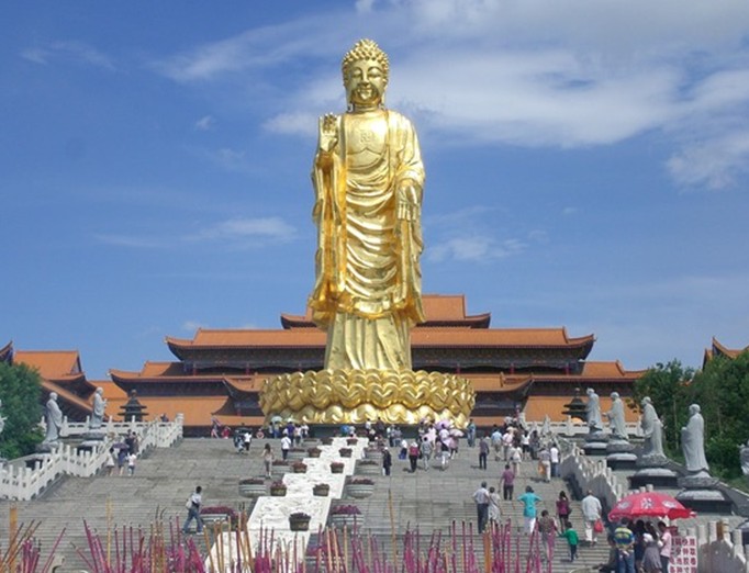 景區(qū)內(nèi)的紅光山大佛寺伴隨著佛教寺院的梵音佛塔,若絲香火,晨鐘暮鼓,和佛祖來一次心與心的交流。感受佛教的博大精深。尤其是景區(qū)內(nèi)高40.8米的西域大佛銅立貼金雕像,讓人充分領(lǐng)略佛教文化在西域的發(fā)揚(yáng)與光大。大佛高高聳立,直入云端,氣勢之大顯得人更加渺小。大佛神態(tài)慈祥,身披金裝,一種普度眾生的超然神態(tài),已讓人心生敬畏。懷著虔誠的心態(tài),在大佛下許愿燒香,或許是為了追求一種內(nèi)心的信仰與平靜.遠(yuǎn)望大佛,壯觀雄偉,金光燦燦,氣勢磅薄,一派肅穆,揚(yáng)善棄惡的佛教理念盈盈而生...看過介紹才知道釋迦牟尼佛祖銅像高達(dá)38.8米,重量達(dá)百余噸.由烏魯木齊市大光明銅藝廠主持設(shè)計(jì),佛身全靠工匠們一點(diǎn)一點(diǎn)打造而成,僅佛手高有5.7米,佛的耳朵高2.6米,是世界第二大銅造立佛。