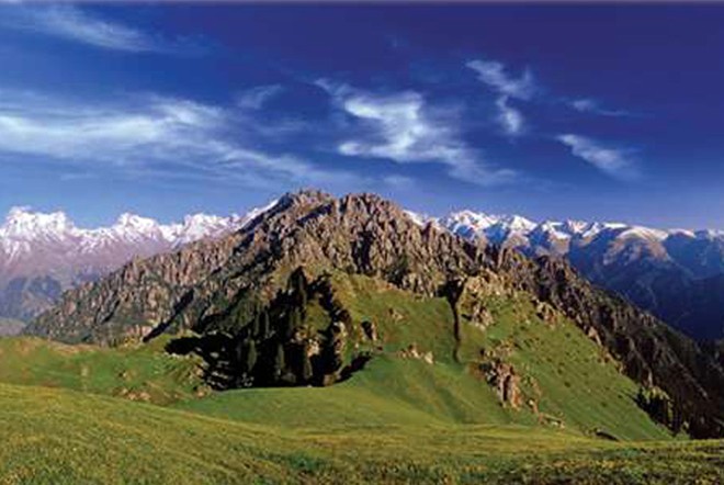 馬牙山位于天池西南,距天池約3公里,深藏于博格達(dá)蜂的山巒中,西臨瑤庫(kù)爾,北連燈桿山。山休長(zhǎng)約5公里,峰高海拔3056米。背靠皚皚雪峰,面向粼粼冰池。在這里游覽觀賞,即可盡得奇峰異石之妙,也可探窺大自然的神秘。馬牙山頂,尖石林立,遠(yuǎn)看好像一排排巨大的馬齒,故名。馬牙山斷崖崔嵬,石峰林立;遠(yuǎn)望猶如一排馬牙,仰視宛若萬(wàn)笏朝天;亂石爭(zhēng)奇,疊巖競(jìng)秀,令人目眩神迷。馬牙山這種景觀是巖石風(fēng)化作用造成的。哈薩克人把馬牙山稱(chēng)為“瑪依阿散”,意思是酥油之山。馬牙山頂比較平坦,是一片肥美的草原,夏季長(zhǎng)滿(mǎn)了酥油草,盛開(kāi)著各色鮮花。站在這里環(huán)顧四揍走運(yùn)四周,北面的天池風(fēng)光盡收眼底,東面的博格達(dá)峰和南面的雪山云霧似乎近在咫尺,而西面烏魯木齊的舍田邊也歷歷在目。