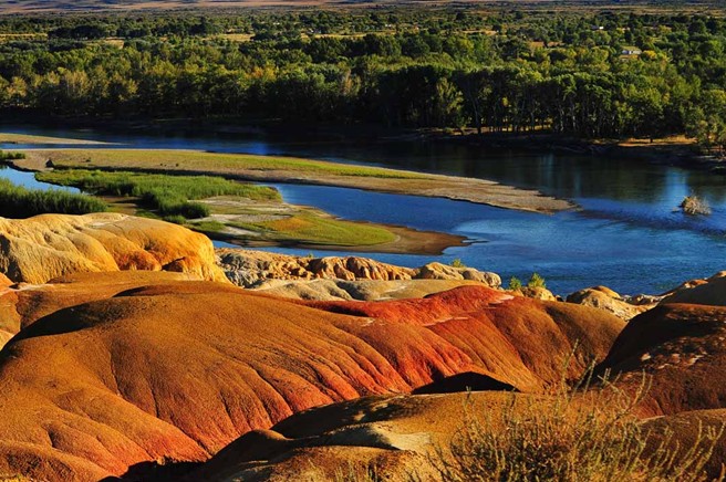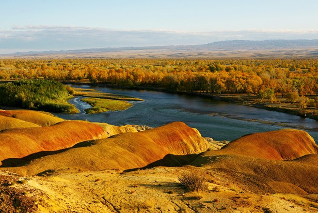 五彩灘一河兩岸,南北各異,是國家4A級景區(qū)。五彩灘又稱五彩河岸,位于額爾齊斯河流域,由于長期受風蝕水蝕以及淋溶等自然作用的影響而形成的,屬于典型的雅丹地貌,“雅丹”是地理學名詞,維吾爾語“險峻得土丘”之意。其南邊是我國唯一向西流入哈薩克斯坦--俄羅斯--北冰洋的額爾齊斯河,僅次于伊犁河的新疆第二大河。