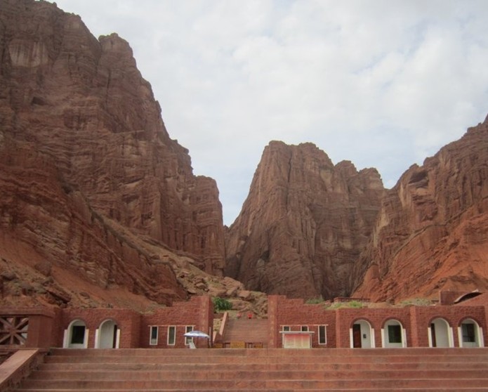 相傳唐朝時有12名中原漢僧到西域傳經(jīng),一路翻山越嶺、穿越大漠。歷經(jīng)艱辛來到龜茲,在尋找佛緣圣山時進入大峽谷,進入通天洞。從此,化羽成仙升入天界。藏寶洞 傳說成吉思汗揮師西域時,古龜茲王攜帶財寶而逃,王氏貴族藏進大峪,并將財寶藏于此洞,且封閉洞口,免遭元兵搜捕。20世紀60年代曾有弟兄二人進谷尋寶,發(fā)現(xiàn)了藏寶洞,取走財寶遠走他鄉(xiāng),僅留下至今朽在洞口下方一段木質(zhì)軟梯的遺跡。后來,不斷有人進谷尋寶,可再也沒有找到第二個藏寶洞。只是意外地在谷口兩側(cè)半山坡上發(fā)現(xiàn)了漢代冶鐵、煉銅遺址。