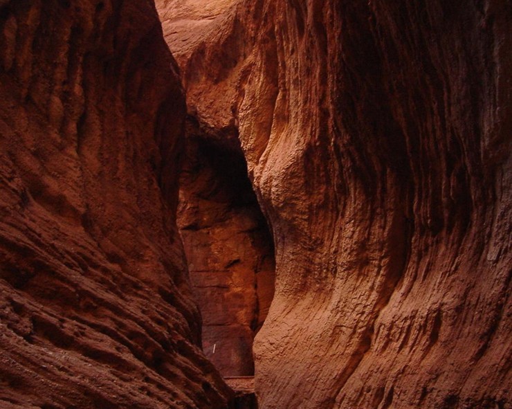 大峽谷近似呈南北弧形走向,開口處稍彎向東南,末端微向東北彎曲,由主谷和七條支谷組成,全長5000多米,谷端至谷口處自然落差200米以上,谷底最寬53米,最窄處0.4米,僅容一人低頭彎軀側(cè)身通過。谷側(cè)奇峰嶙峋,爭相崛起;峰巒疊嶂,劈地摩天,崖奇石峭,磅礴神奇;神洞秘窟,各蘊其意。谷內(nèi)蜿蜒曲折,峰回路轉(zhuǎn);步步有景,舉目成趣;泉水叮咚,鳥叫蟬鳴,寒暑不浸,游人稱絕。整個峽谷猶如一條尾震天山頭,口飲庫河流(開口于庫車河),曲身九十九的巨龍劈山而臥,呼風喚雨,神秘莫測。更令人稱奇的是,距谷口1400米深處,高約35米的崖壁上,有一始建于盛唐時期,壁畫丹青的千佛洞遺址,就文字記載和繪畫藝術(shù)而言,在古西域地區(qū)至今已發(fā)現(xiàn)的300多座佛教石窟中絕無僅有,實屬罕見。無山不成谷,峰奇谷更幽。峽谷區(qū)域平均海拔1600米,最高山峰2048米。組成峽谷的奇峰群山由赭色的泥質(zhì)沙巖構(gòu)成,當?shù)鼐S吾爾語叫做“克孜利亞”,即紅色的山崖。神秘大峽谷正處在當今中國九大影視基地之一的克孜利亞勝景中。龐大的紅色山體群形成于距今1.4億年前的中生代的白堊紀,經(jīng)億萬年的風剝雨蝕,洪流沖刷,形成縱橫交錯,層疊有序的垅脊與溝槽,遠看如詩如畫,狀若“布達拉宮”,仙天瓊閣;近瞧若人似物,如夢似幻,惟妙惟肖,神韻萬端。令人有鬼斧神工,奇景天成之慨嘆。尤以谷口處的三座山體(乃頭山、麗人山、佛面山)最為壯觀。特別在夕陽斜射,朝霞映山,極目遠眺,色艷紅天。大有不是火焰山,勝似火焰山之奇感。