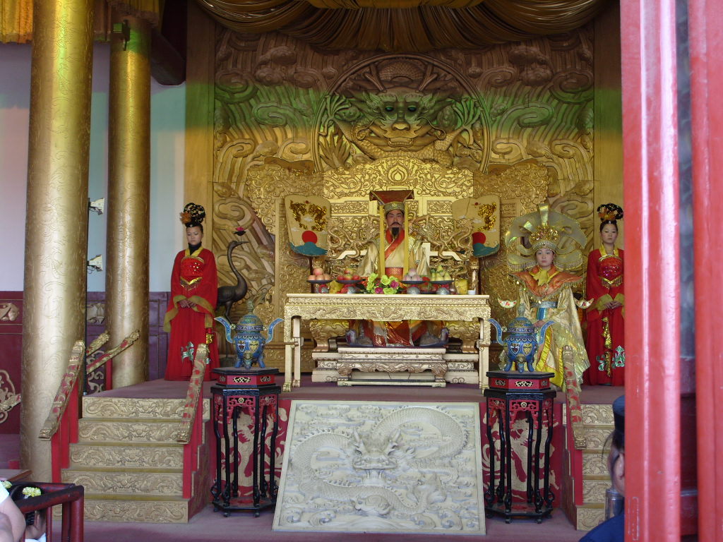 在龍亭臺(tái)階下西側(cè)有幾間側(cè)殿,利用這些側(cè)殿搞了一個(gè)反映宋代歷史的蠟像館,這是中國(guó)的第一座專題蠟像館,占地面積為410平方米。該館將北宋皇朝九帝執(zhí)政時(shí)期政治、經(jīng)濟(jì)、文化、外交、科技等方面的重大事件,用九組蠟像表現(xiàn)出來。組蠟像都是根據(jù)史實(shí)精心設(shè)計(jì)的,如關(guān)于王安石變法的一組蠟像,主角菜三個(gè)。端坐在中間御座上的是北宋第六代皇帝宋神宗趙頊。宋神宗身穿一件淺黃色的龍袍,腰圍紅色玉帶,頭微向左方,注視著坐在左側(cè)的一位大臣。并凝神傾聽他的講話。這位大臣就是被宋神宗提拔為宰相、版權(quán)所有聊城聊之旅國(guó)際旅行社有限公司,轉(zhuǎn)載必究!主張變法的王安石。坐在另一側(cè)的則是另一位大臣司馬光,他是反對(duì)變法的,這時(shí)他正在低頭沉思。這些歷史人物的服飾,包括衣服的顏色,帽子的款式、玉帶的樣式等等,都是經(jīng)過考據(jù),盡量做到比較符合歷史的實(shí)際。而在工藝上,蠟像的膚色、毛發(fā)、眼珠、神態(tài)表情,都比較逼真。