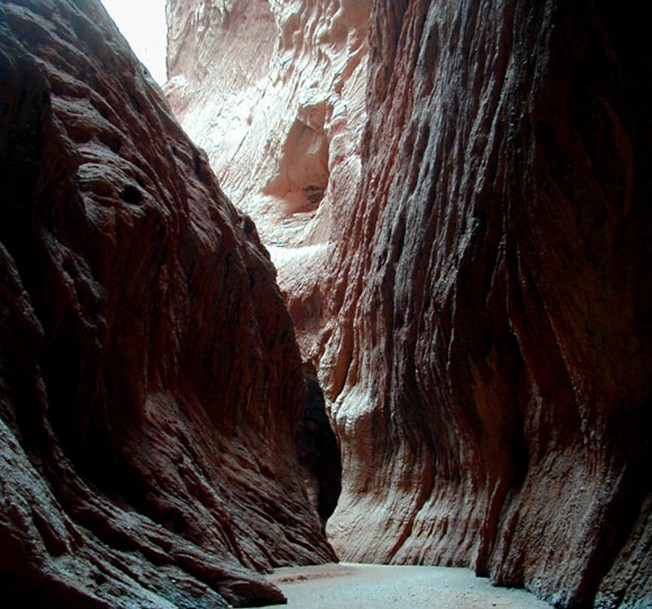 天山大峽谷又稱克孜利亞大峽谷,位于新疆阿克蘇地區(qū)庫車縣北部,(古稱龜茲)城北64千米,北緯42°8′,東經(jīng)83°5′。呈東向西縱深長約5.5公里。為紅褐色巖石經(jīng)風(fēng)雕雨刻而成,峽谷曲徑通幽,別有洞天,山體千姿百態(tài),峰巒直插云天,溝中有溝,谷中有谷。南天門、幽靈谷、月牙峽、虎牙橋、魔天洞、雄師淚等景觀造型生動,形態(tài)逼真。距谷口1.4公里處的山崖上有一處唐代石窟,版權(quán)所有山東聊城聊之旅國際旅行社有限公司,轉(zhuǎn)載必究!窟內(nèi)南、北、西壁上有殘存壁畫和漢文字。距峽谷700米處另有一峽谷,與神秘峽谷相伴。天山神秘大峽谷,集人間峽谷之妙,兼天山奇景之長,蘊萬古之靈氣,融神、奇、險、雄、古、幽為一體。景異物奇,令人神往。1999年發(fā)現(xiàn)后,游人日益俱增;2002年元月榮升為國家AA級旅游名勝風(fēng)景區(qū)。為古絲綢之路黃金旅游線上新增了一顆璀璨的明珠。神秘的“天山大峽谷”距離庫車縣城約70公里,谷口十分開闊,深谷之中卻是峰回路轉(zhuǎn),時而寬闊,時而狹窄,有些地方僅容一人側(cè)身通過。谷底比較平坦,兩側(cè)是高聳的石壁,腳下是細(xì)沙,有些路段還一層淺淺的積水。谷內(nèi)奇峰異石千姿百態(tài),數(shù)不勝數(shù),神犬守谷、旋天古堡、顯靈洞、玉女泉、臥駝峰等景觀個個形態(tài)逼真。神秘而久遠的的阿艾石窟,距離谷口不足2公里,高懸于絕壁之上,最初僅可攀著30多米高的懸梯而上,現(xiàn)已修建石階棧道。據(jù)專家鑒定,石窟建于盛唐初期。石窟很小,深不足5米,約一人高,洞頂呈拱形??邇?nèi)三面皆有殘存的壁畫,而壁畫上竟然罕有地出現(xiàn)了漢字,與古西域地區(qū)其他數(shù)百座石窟相迥異,充分顯示漢文化的痕跡。
