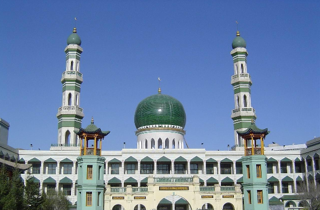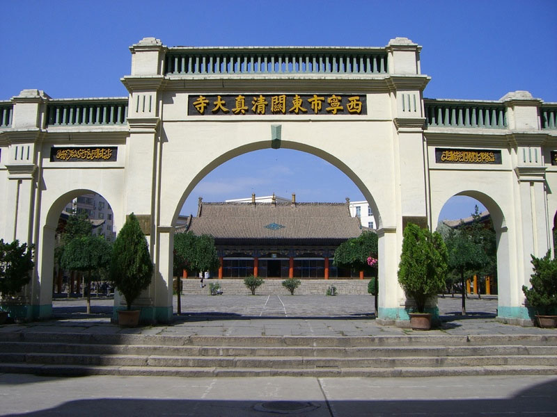 西寧東關(guān)清真大寺占地總面積為13602平方米,建筑物雄偉壯觀,具有中國古老的建筑藝術(shù)和伊斯蘭教特色。大寺的原正門,即“前三門”,座南朝北,是一大兩小的綠色西式大門,高十米,寬為十五米,門頂橫幅匾額上鑲有金光閃閃的“西寧東關(guān)清真大寺”八個(gè)大字(前三門現(xiàn)處在清真大寺臨街樓房之前)。