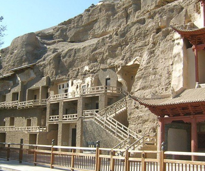 洞窟的形制主要有兩種,一種為縱卷頂單室窟,二是有前后二室的支提窟,前窒為縱卷頂,左右開通道,通道后為橫卷頂,隧道狀后重,前窒與后室間的中心柱是長方形,窟形與克孜爾千佛洞相似。而1、2、3號窟的中心柱又是扁的,窟頂繪出的朵云紋、纏枝蓮花紋與敦煌莫高窟晚唐五代,宋初的石窟形制相同,版權(quán)所有山東聊城聊之旅國際旅行社有限公司,轉(zhuǎn)載必究!而7號和9號殘余壁畫有菱形方格紋,開創(chuàng)時期與二三期石窟相同,即在西晉與隋代之間。在錫克沁千佛洞1公里處,有一處“七個星明屋”,明屋是維吾爾語“千間房”之意,這兒是一處頗具規(guī)模晉唐兩代的佛寺遺址。古寺散建在沙灘和坡地上,有殿堂、廟宇、僮房、佛塔共大小建筑93處,均為土坯砌筑,現(xiàn)僅存基礎(chǔ)部分,佛寺分南大寺和北大寺兩部分,一條較寬的泉溝將南北大寺分開。南大寺前后的兩個大殿為中心建筑,前殿較大,長23米,寬21米,大殿前有數(shù)座六角形基座的塔,高大的臺基上,有類似大明宮的建造模式,殿兩側(cè)及背后均建有通道,殿前正中建塔,塔東南有嘹望臺,殿西北有六角形基地亨廬頂式塔,左右及后部有僧房小殿堂式建筑.北大寺由并列的3所大殿組成,建造模式與南大寺相仿,殿前山門東西兩側(cè)有土臺高約10米,為當(dāng)時的鐘樓遺址,西側(cè)土臺與山門之間有4個支提式窟,另外在中大殿和東大殿后面,有6個土塔遺址,塔基各邊有6角形壺門,并有方形塔院,北大寺建筑雖大多頹廢,但仍可看出原有的規(guī)模。