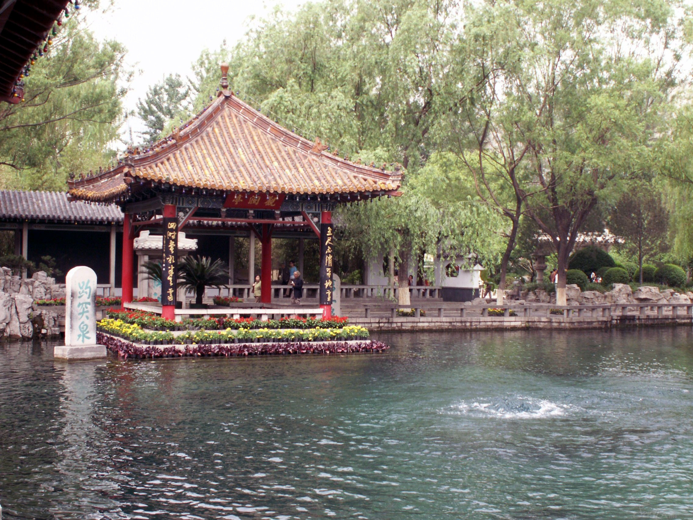 金線泉,泉池東西長(zhǎng)2米,南北寬1米,池深1.2米,池壁及池周圍欄桿均用精細(xì)的大理石砌成。
