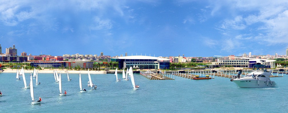 日照市世帆賽基地風(fēng)景區(qū)位于中國日照市萬平口海域,總占地面積1.2平方公里。港池面積40萬平方米。分為淺水區(qū)、深水區(qū)、特深水區(qū)。主要設(shè)施有:浮動碼頭6條,停船泊位320個;帆船競賽上下水坡道150米;出???00米,擋沙提350米、防浪堤450米。陸域面積80萬平方米。主要設(shè)施有:帆船俱樂部7340平方米;水上控制中心6500平方米;艇庫丈量室2600平方米;停船廣場2.5萬平方米;集裝箱停放場1.5萬平方米;室外運(yùn)動地兩處;帆船景觀雕塑3處;休閑棧道3000平方米;生態(tài)園林35萬平方米。