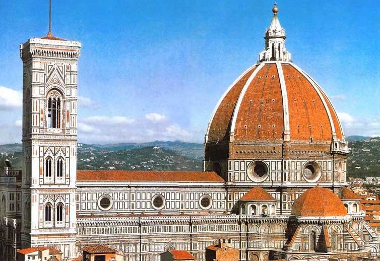 建于1296年的圣瑪利亞?德爾?弗洛雷大教堂,為佛羅倫薩眾教堂之首。這是一座十分輝煌的羅馬式建筑,從設(shè)計(jì)開始一直到整座建筑完工,它是幾代藝術(shù)家勞動的結(jié)晶。它那由白、綠和粉紅色條紋大理石砌成的外墻,極具魅力,而那獨(dú)特的大圓頂和那別致的鐘樓為其精華所在。您若登樓俯瞰,佛羅倫薩那迷人的古城風(fēng)貌一定會令您難忘。