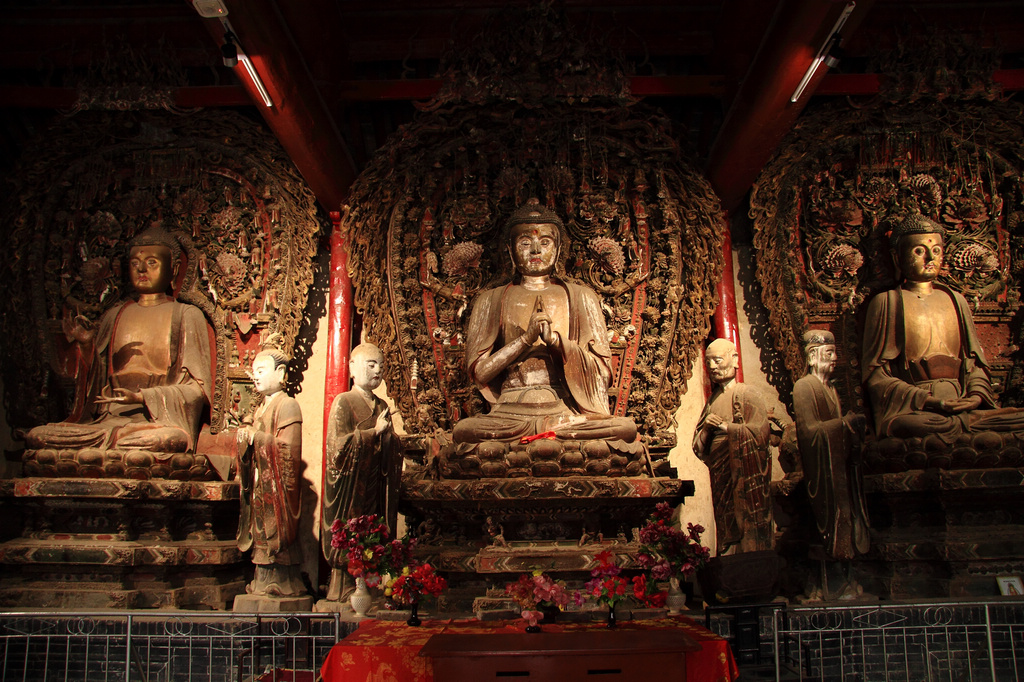 水陸庵原名水陸殿,為六朝古剎,國家級重點(diǎn)文物保護(hù)單位,以保存古代精巧罕見的彩塑而聞名,被譽(yù)為“中國第二敦煌”。是國內(nèi)目前保存最大的壁塑群。壁塑群把繪畫、圓雕、浮雕、樓刻藝術(shù)手段容為一體,在墻、梁、柱上鑲滿了三千七百多尊人物及自然界萬物的塑像。