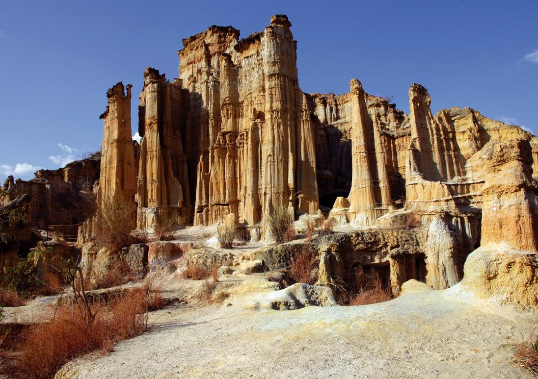 云南土林,分布較廣,其中以元謀縣的物茂土林、班果土林、浪巴鋪土林為佳。它與l陸良彩色沙林、路南石林并稱之為“云南三林”。元謀物茂土林位于元謀縣境內(nèi),距縣城32公里,是個(gè)不可不去的地方。