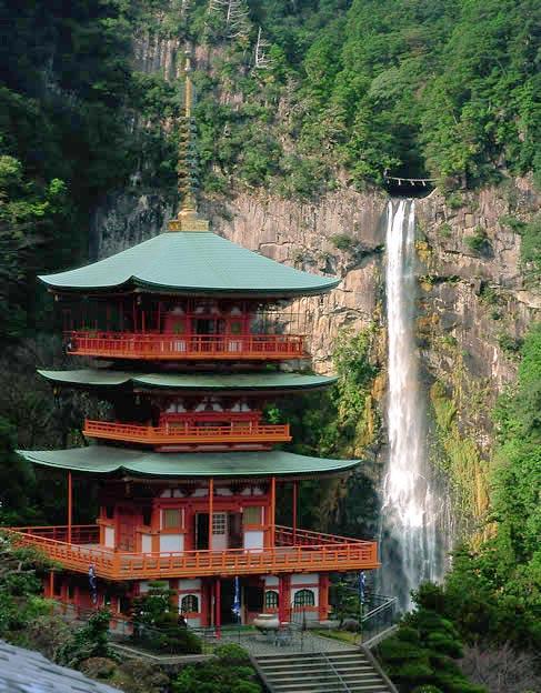 飛瀑神社是將那智瀑布作為神體的神社,還擁有象征那智山的深紅色三重塔。