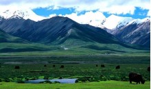 羌塘草原出拉薩沿青藏公路向北走99公里,過(guò)了羊八井地?zé)犭娬?,就可以看到念青唐古拉山,它的北面,就是遼闊的羌塘草原。羌塘,是中國(guó)五大牧場(chǎng)之一,位于昆侖山脈、唐古拉山脈和岡底斯山脈之間,它不僅是野生動(dòng)植物的天堂,同時(shí)也是一個(gè)具有豐厚沉積層的文化沃土。