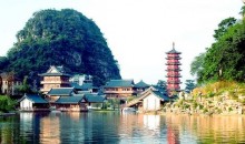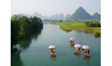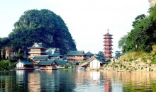 遇龍河是陽朔僅次于漓江的第二大河流。發(fā)源于臨桂縣古里河,流經(jīng)陽朔三鄉(xiāng)鎮(zhèn)三十余個村莊,沿桂(林)陽(朔)公路(國道321線)走向緩緩南流。至穿巖古榕景區(qū)青厄渡口處與金寶河匯合后流入漓江。遇龍河全長43.5公里,寬約38—61米,深0.5—2米長年河水清澈,水流緩慢。正常流量約每秒5立方米。河中筑有多處堤壩;不通航,素有“小漓江”之稱,是陽朔縣部分重點文物古跡和主要田園山水風景所在地。
