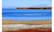 “克魯克”是蒙古語,意思是“多草的芨芨灘、水草茂美的地方”。她位于柴達木盆地的東部,屬于微咸性淡水湖,水色清澈、湖面平靜,景色綺麗旖旎。 每年初春,克魯克湖的冰開始融化時,成群的黑頸鶴、斑頭雁、魚鷗、野鴨等珍禽,從遙遠的東南亞諸島飛到這里筑窩壘巢、生兒育女。黑頸鶴喜歡在克魯克湖邊沼澤地和蘆葦叢中筑巢棲息,斑頭雁、灰雁則在沙丘上壘窩居住。這里是鳥的天堂,魚的故鄉(xiāng),咕咕嘎嘎的鳥鳴回蕩在蘆葦叢中,有著數(shù)不盡的快樂