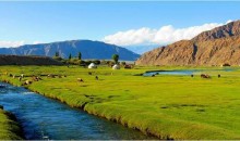 阿拉爾金草灘位于塔什庫爾干縣城東側,塔什庫爾干河兩岸,占地面積20平方公里,屬帕米爾高原上的一片濕地。