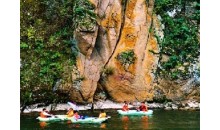 下舞陽河景區(qū)系舞陽河區(qū)十風(fēng)景名勝大景區(qū)之一,位于鎮(zhèn)遠(yuǎn)縣與施秉縣之間,規(guī)劃面積 121 平方公里,景點 33 處。景區(qū)以高峽平湖、瀑泉飛流為主體,山色水韻風(fēng)光迷人。"破鏡重圓"半含水中半露崢嶸奇妙的三疊水珠落玉盤直瀉深潭;鴛鴦戲水,情深意濃;呼大令喊泉神靈有喊必應(yīng),之水出止呼水隱;山峰神態(tài)似"孔雀開屏",形態(tài)逼真;" 圣師徒"前往探幽 … …