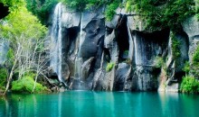 綠淵潭綠淵潭位于吉林省長白山國家自然保護(hù)區(qū),因池水碧綠深窘而得名。綠淵潭瀑布飛流直下,最高落差達(dá)26米,瀑水落于巨石而四漸,而后流入深潭。每逢霧起,潭上水霧彌漫,與高山岳樺、曠古巨石渾然而一體,美不勝收,恰似人間仙境。