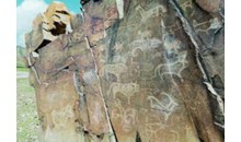 魯芒溝巖畫位于天峻縣天棚鄉(xiāng)之西南,溝為東南-西北向,溝口處有西寧-天峻公路橫穿,溝東西兩側(cè)均為高山,山間和溝谷間牧草叢生,為良好的天然牧場。在溝內(nèi)約4公里處東側(cè)為石山,石山根部為山體潰塌而落下的大石塊,這些石塊表面有一層油黑發(fā)亮的氧化面,巖畫就制作在這些大石塊上,共有3處,分別刻在3塊相距不遠石面較平的大石塊上。