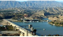 在甘肅永靖縣境內(nèi)。黃河兩岸崇山峻嶺, 形成峽谷。1974年建成具有發(fā)電、防洪、灌溉、養(yǎng)殖、航運(yùn)等功能的綜合性水利樞紐工程。一條長(zhǎng)840米、高147米的巨大攔河壩把黃河攔腰斬?cái)? 形成了劉家峽水庫(kù)(庫(kù)容57億立方米,水域面積130平方公里),大壩下安裝了五臺(tái)國(guó)產(chǎn)大型水輪發(fā)電機(jī)組,成了總裝機(jī)容量122.5萬(wàn)千瓦年發(fā)電量57億度的黃河上游第一座水力發(fā)電站。