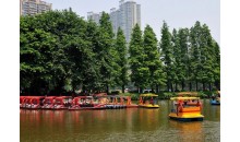 流花湖公園占地54.43公頃,其中湖水面積占60%,綠化占陸地面積88%。流花湖公園現(xiàn)址相傳是晉代芝蘭湖,后成為菜田。1958年市政府為疏導街道水患,組織全市人民義務勞動,建成流花湖等四個人工湖,后辟為公園,除原有蓄水防洪功能外,還是集游覽、娛樂、休憩功能為一體的大型綜合性公園。公園以棕櫚植物、榕屬植物、開花灌木及開闊的草坪、湖面與輕巧通透的嶺南建(構)筑物相互配合,形成具有強烈南亞熱帶特色的自然風光。