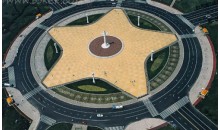 廣場(chǎng)中心由999塊四川紅色大理石鋪設(shè)而成,紅色理石的外圍是黃色大五角星,紅黃兩色象征著炎黃子孫。廣場(chǎng)周邊還設(shè)有5盞高12.34米的大型宮燈,由漢白玉柱托起,光華燦爛,與華表交相輝映。廣場(chǎng)四周,雕刻了造型各異的9只大鼎,每只鼎上以魏碑體書有一個(gè)大字,共同組成"中華民族大團(tuán)結(jié)萬歲",象征著中華民族的團(tuán)結(jié)與昌盛。