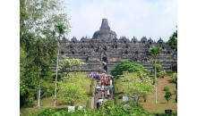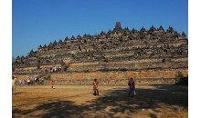 婆羅浮屠位于印度尼西亞,大約于公元750年至850年間,由當(dāng)時統(tǒng)治爪哇島的夏連特拉王朝統(tǒng)治者興建。“婆羅浮屠”這個名字的意思很可能來自梵語"Vihara Buddha Ur",意思就是“山頂?shù)姆鹚隆?。后來因為火山爆發(fā),使這佛塔群下沉、并隱蓋于茂密的熱帶叢林中近千年,直到19世紀初才被清理出來。與中國的長城、印度的泰姬陵、柬埔寨的吳哥窟并稱為古代東方四大奇跡。
