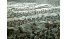 秦陵地宮展覽館,位于“千古一帝”秦始皇帝陵西側(cè)大約2公里。這是一個(gè)人造景點(diǎn),是根據(jù)司馬遷對(duì)秦陵地宮的描述所建。秦陵地宮占地面積16650平方米,建筑面積4500平方米,分為上下兩層,通高25.7米,其中地下8.7米,整體以橫剖縱貫的手法,再現(xiàn)了秦始皇陵陵園地貌和地宮,向游人展示了二千多年前秦始皇陵的輝煌雄偉和壯觀氣勢。