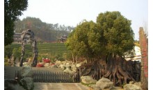 中國?根博園地處浙江省西部,錢塘江源頭--開化縣,毗鄰黃山、千島湖、三清山,占地360余畝、由衢州醉根藝品有限公司投資4.5億開發(fā),工藝美術(shù)大師徐谷青先生精心創(chuàng)作,以盆景、奇石、根藝、園林古建構(gòu)成恬靜自如、天人合一的畫卷,匯聚各類植物、名貴樹種160多種,有貓頭鷹、山雀鷹、長尾藍(lán)雀、紅嘴相思鳥、白頭翁、畫眉等36種鳥類常年在此棲息。
