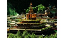 拉卜楞寺西南角,由三世貢唐倉(cāng)?貢曲乎丹貝仲美大師建成于1805年,原名現(xiàn)見解脫大金塔,因塔內(nèi)供有從尼泊爾迎請(qǐng)來的無量光佛(阿彌陀佛)像而享譽(yù)海內(nèi)外,寶塔造型別致,工藝精巧,在建筑藝術(shù)與宗教意義上達(dá)到了完美神圣之境界?,F(xiàn)存寶塔由六世貢唐倉(cāng)?丹貝旺旭大師為丕振宗風(fēng),宏教利民,而于1991年2月8日在原寶塔遺址舉行凈地儀軌,主持籌建。