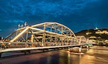 黃河鐵橋位于蘭州城北的白塔山下、金城關(guān)前,有"天下黃河第一橋"之稱,是蘭州市內(nèi)標(biāo)志性建筑之一。